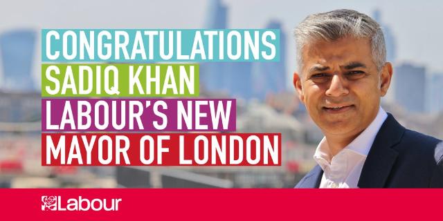 Hasil pengambilan suara pada 5 Mei 2016, menunjukkan Khan yang disebut